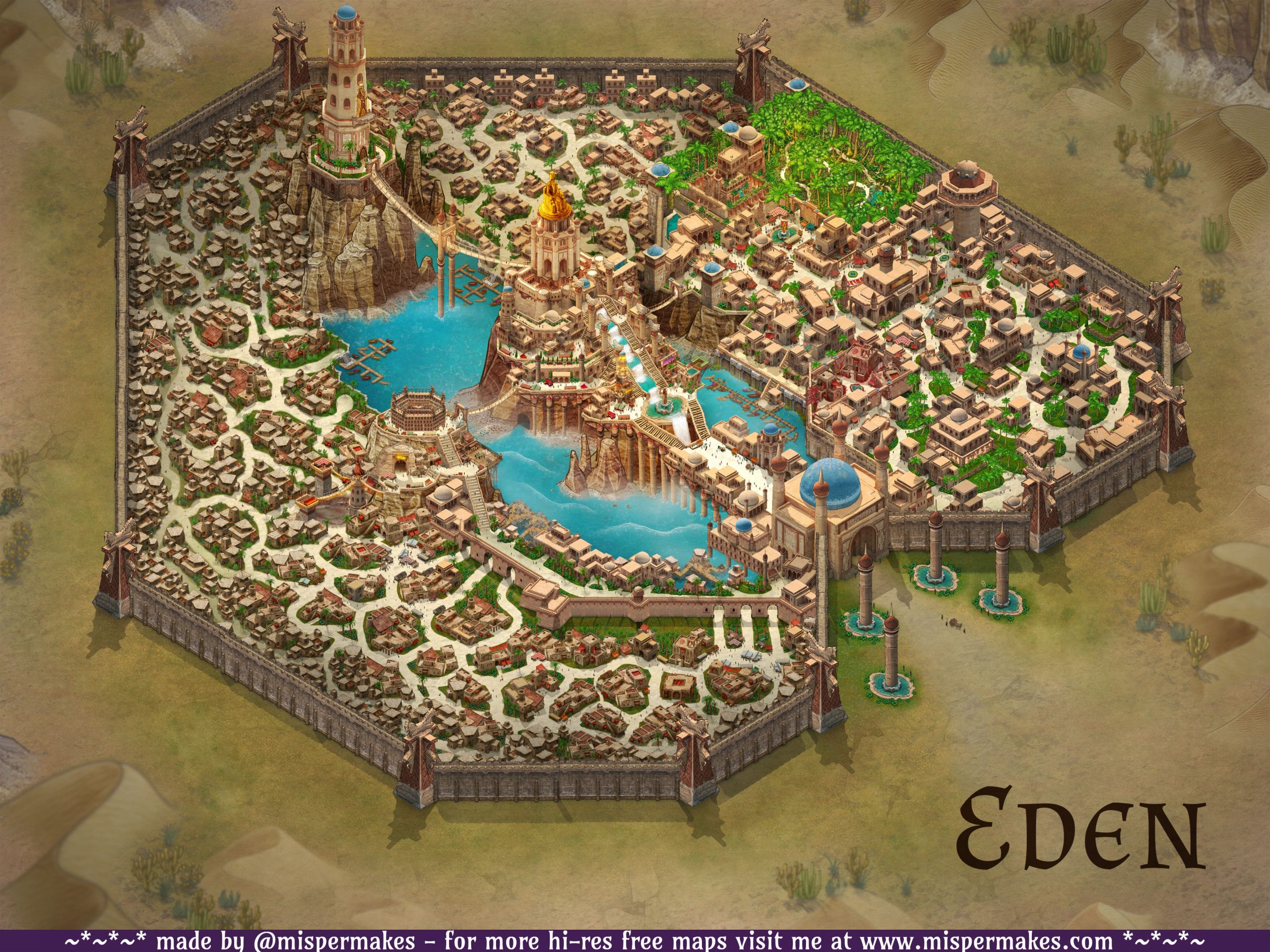 Eden – 4k HI-RES City Map – with and without text – includes Foundry VTT import