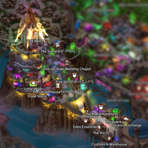 Coins like gold are not accepted in Eden. All currency must be translated into Xowidowis, the exclusive currency of the city, and conversions are taxed at a 3% rate — both ways.