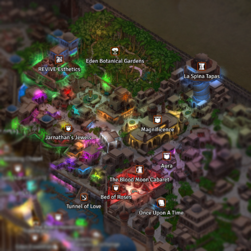 The main, and only, casino in Eden. Featuring a connection to the Summit for inn rooms, a built in resturaunt and many levels of exclusive and VIP games, ETERNITY makes for an easy one-stop-shop to experience the city’s luxury.