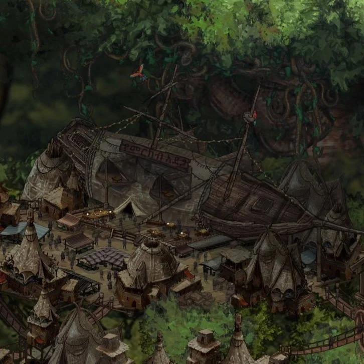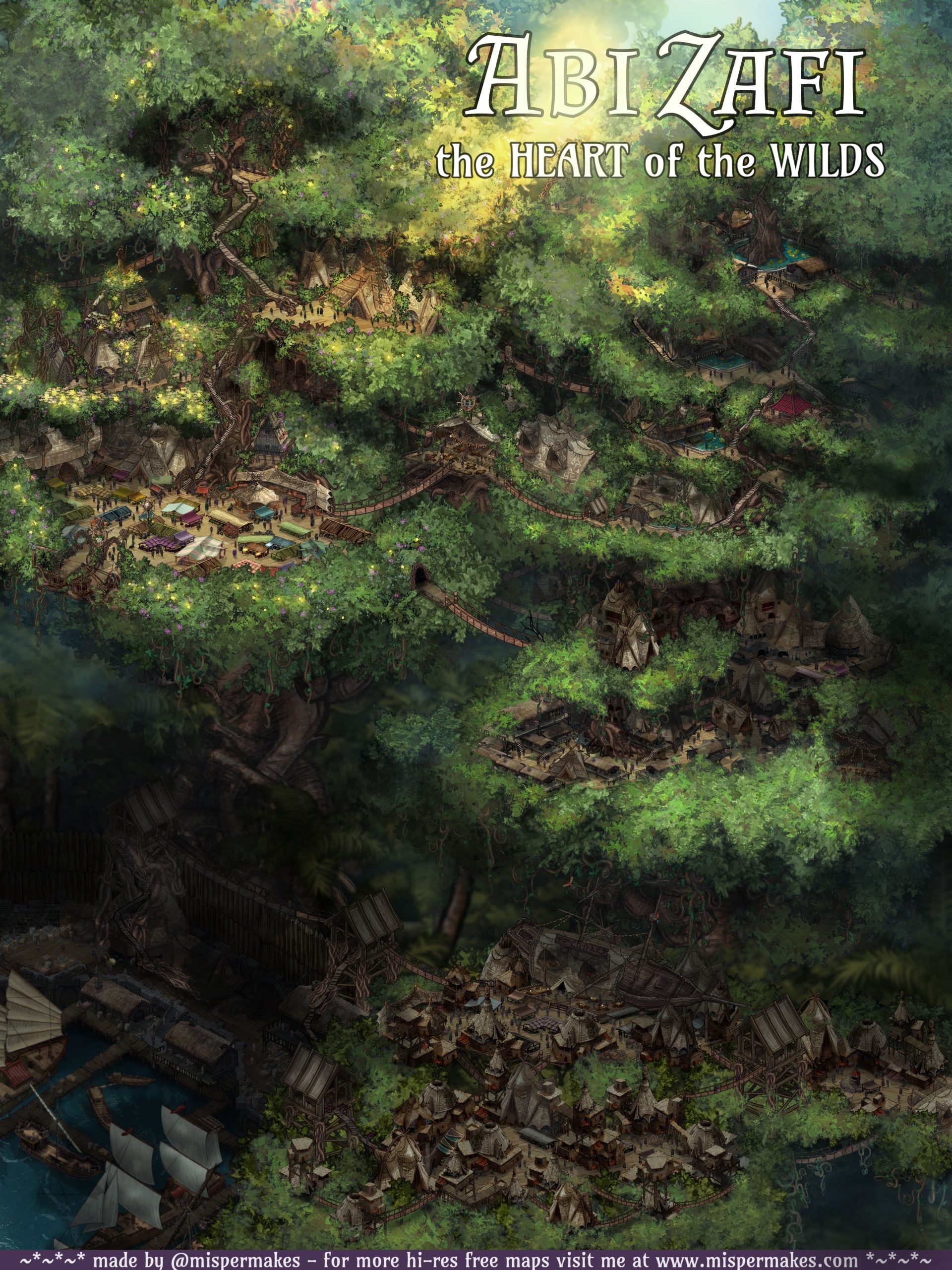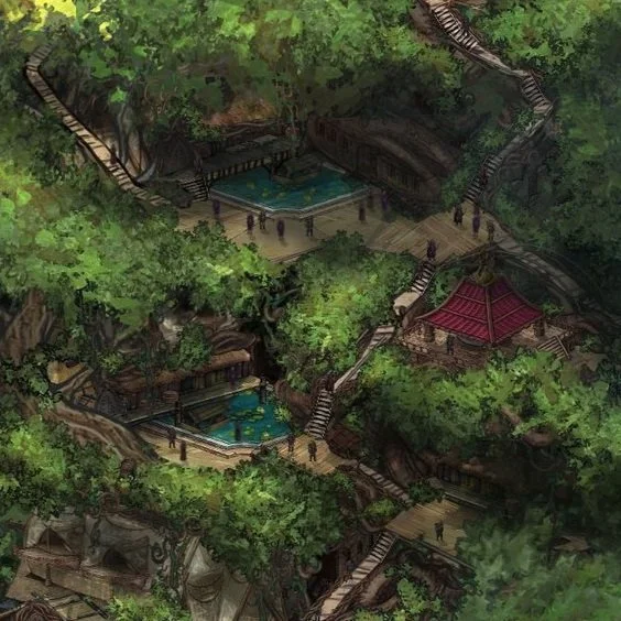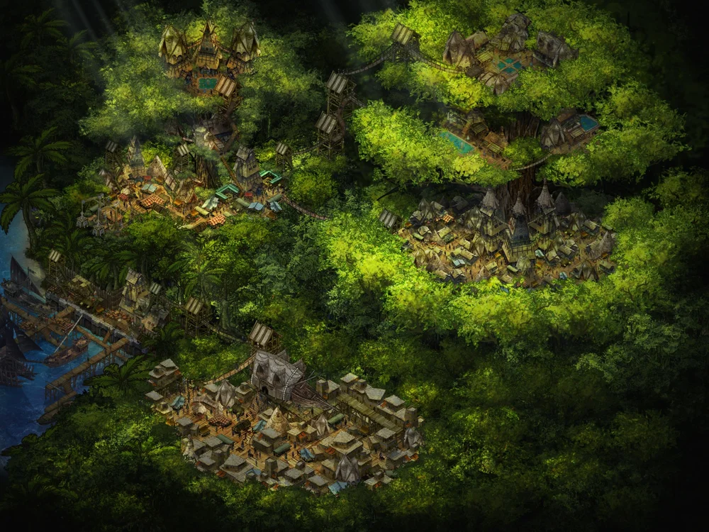 Ābi Zafi is the “capital” of the southern jungle. The jungle knows no formal city-state limits like the North, and instead the cities are delegated with their own power due to the inherently isolating danger of the dark undergrowth. This city knows a bit more freedom and trade due to its heavily guarded port connection.
