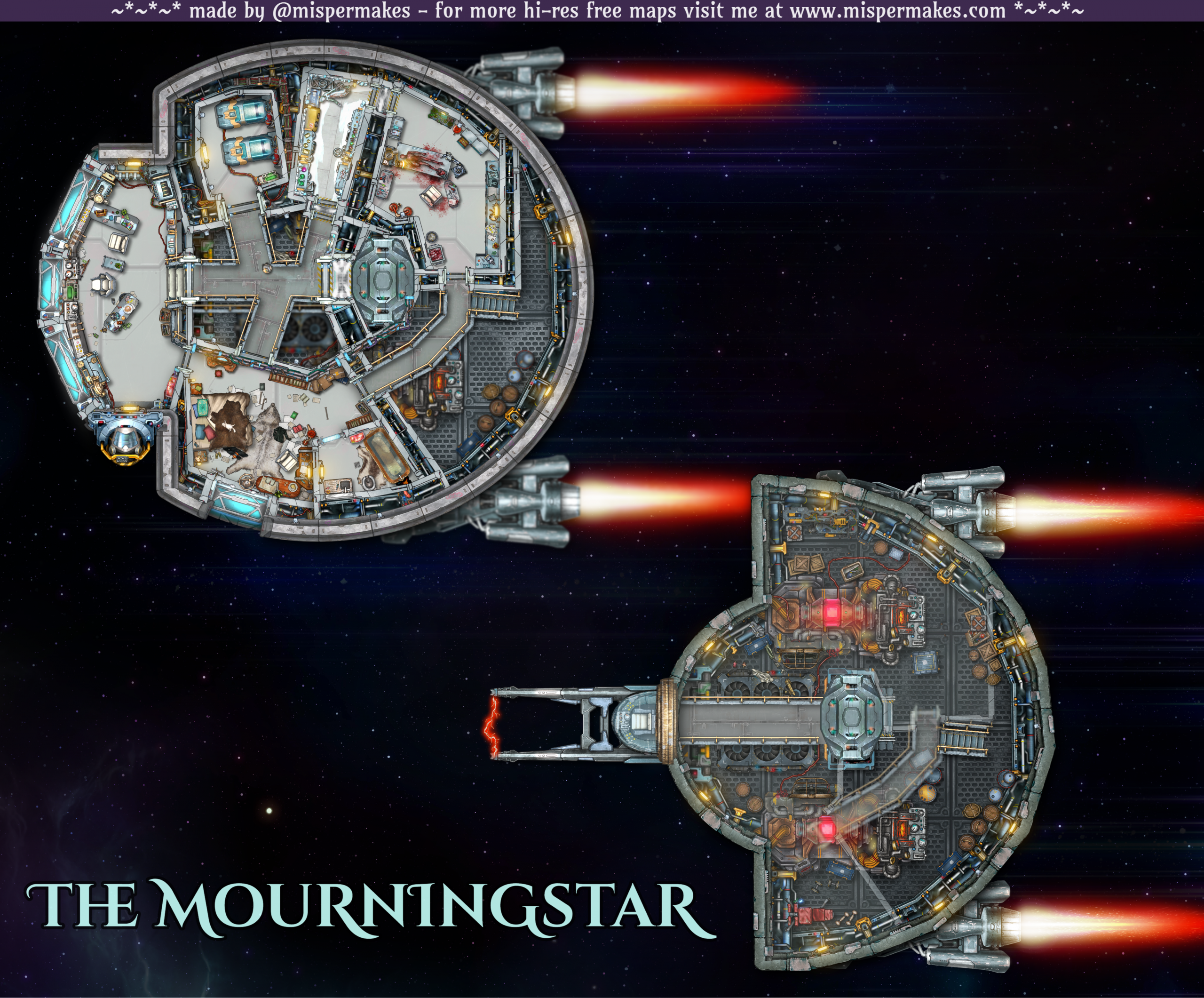 Spaceship – 4k HI-RES Battlemap – with and without text – includes vehicle statblock